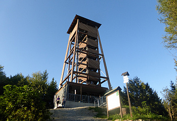 Stavbu tvoří 22 m vysoká dřevěná konstrukce spojená ocelovými prvky. Její spodní část slouží zároveň jako útulna.