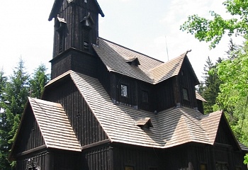 Dřevěný kostel v Bílé se podobá skandinávským středověkým kostelům, které ve zděné podobě vznikaly v 8. století v prostředí Velké Moravy. Stavba v norském stylu byla postavena v letech 1873–1875 podle návrhu stavebního rady Antonína Kybasty. Výstavbu financoval olomoucký kardinál a arcibiskup kníže Fridrich Landgrat z Fürstenbergu.