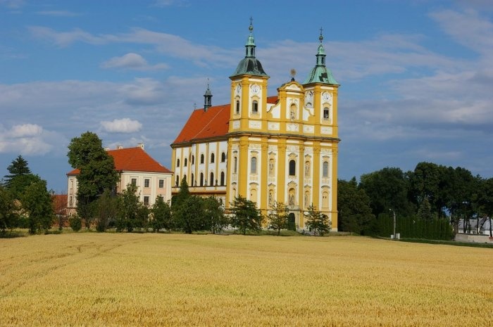 Dominantou obce je poutní chrám Očišťování Panny Marie postavený v letech 1734 - 1756. Mimořádně hodnotná jsou barokní sousoší svatého Floriána z roku 1733, svatého Jana Nepomuckého z roku 1739 a svatého Josefa 1740. K dalším památkám patří kamenný kříž u kostela, kaplička svaté Markéty se studnou a lípou a socha prezidenta T. G. Masaryka odhalená v roce 1936.